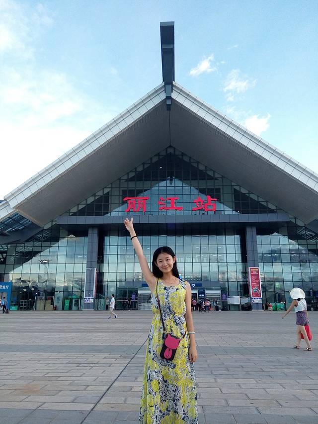 之前看攻略有人说他的火车开始晚点半个小时,到站时提前半个小时。我们没有这样的幸运,稍微晚点。下了车就是公交车站,但是会有乌央乌央的大叔大妈热情询问你需不需要坐车、住客栈。遇见这种情况我们就赶紧离开,将机会留给有需要的人吧。在车上远远地拍一张火车站。