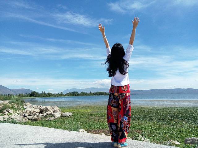 手机的原因没有办法完全展示苍山、蓝天和美女,单反也未必能拍出效果,真的需要身临其境去感受美景。