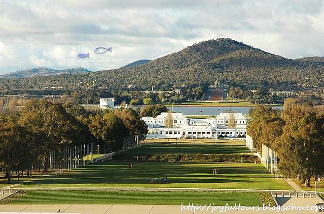 在堪培拉我们主要参观游览了国会山和国会大厦。去国会山的时候,我们把车停在河边,一路走过去,沿途的风景是非常不错滴。
