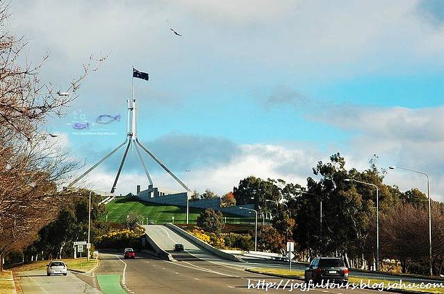 远远看见国会大厦前高高飘扬的澳洲国旗了