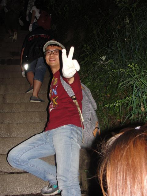 自古以来华山天下险。放下背包里多余的物品,买了电筒、水和手套,于夜里十点半左右开始爬山。山门前遇上了四个四川的老乡,组了个团队,微信名得瑟地叫做“四川华山论剑”。刚开始的时候,大家体力充足,虽然是夜里,但沿途水流潺潺夜色静谧,一行六人一路说说笑笑幻想着能不能在华山遇上小倩、素贞、小青、姥姥,将四川各地方言和普通话完美的转换融合来交谈,乐趣从生。