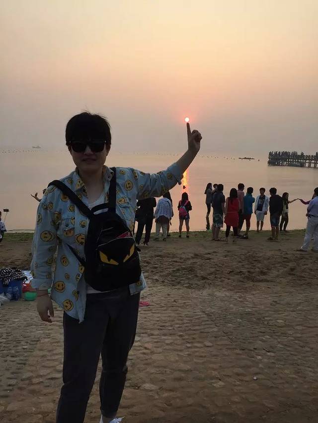早上3:50叫醒到鸽子窝看日出 在网上看攻略鸽子窝的日出很有名 于是就起了个大早去 其实我上一次看日出是我5,6岁的时候,在大连硬是被我妈拖起来看日出,看日出是住宿的地方开车送我们每人10元车费,没有进鸽子窝正门,买票的人很多,司机给我们拉倒了鸽子窝公园旁边的海滩人还是很多,4点多到的,5点多日出才出来,还以为会看不见呐 日出出来那一刻都是欢呼声