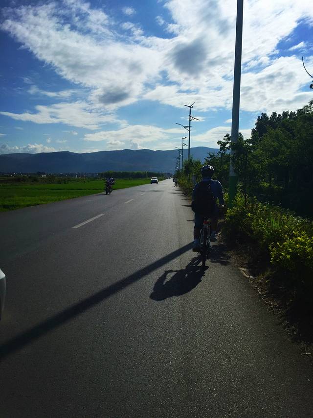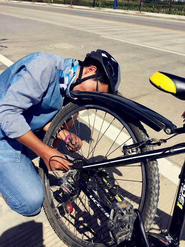 上坡自行车变速弄得链条出了问题,同行的骑友老海帮忙休整,才知道骑行的人一般都会带上全套工具,好吧,说了我不是专业的,第一次体验,慢慢学习改进呀~不发好人卡,是真好人,全程帮我背了小挎包和水。。。