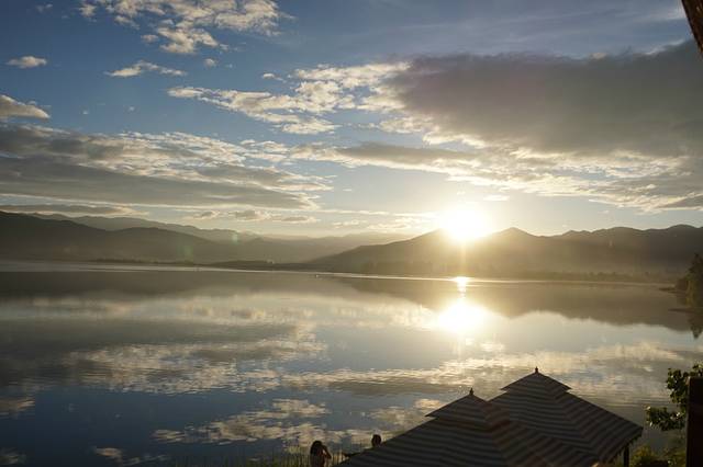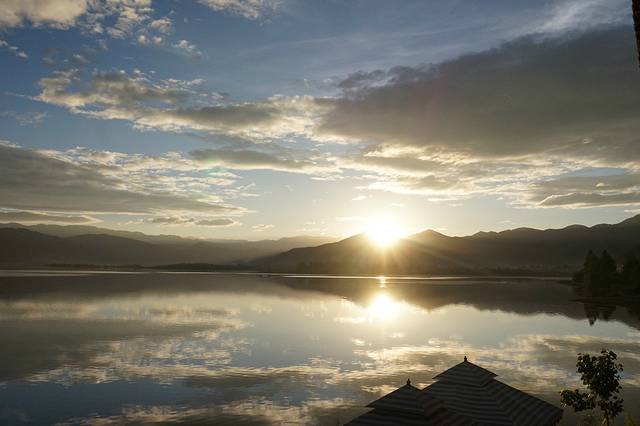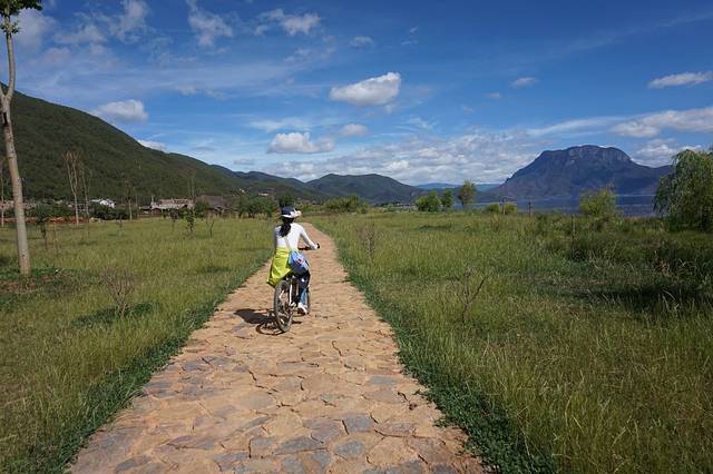 早起,看到了日出。骑车游湖,其实只是游到了大落水。老公不太舒服,中午吃了点东西就回客栈睡觉了。