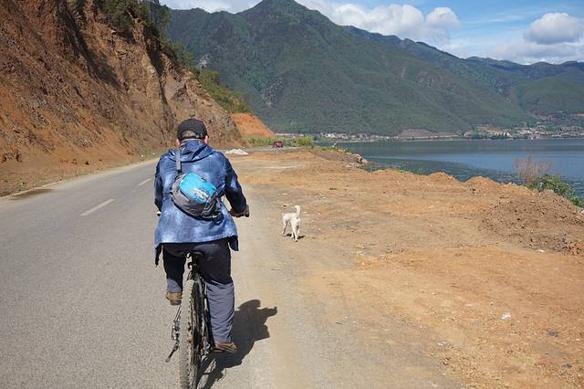 路遇一只小狗,一直给我们带路。应该是只流浪狗,很谨慎,我们给的食物都不吃。后来我们想把它带回客栈,也没有成功。