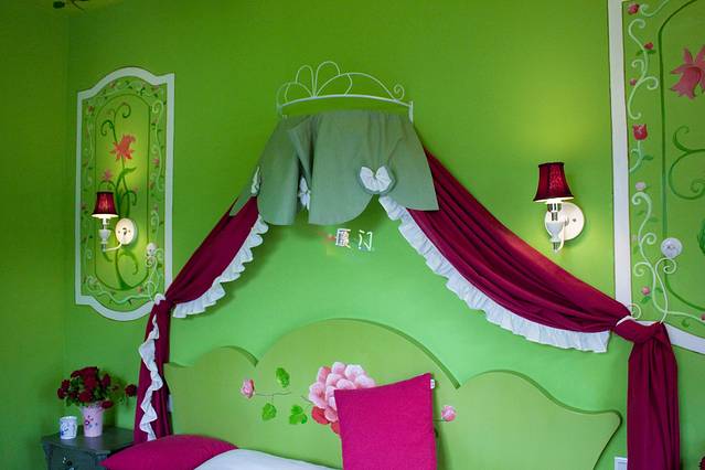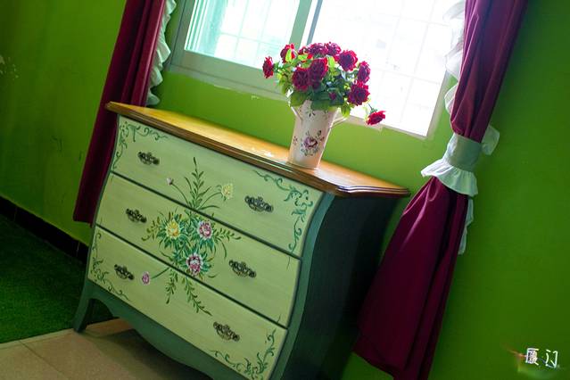 只记得森林绿、小藤椅、花园柜、花边圆床