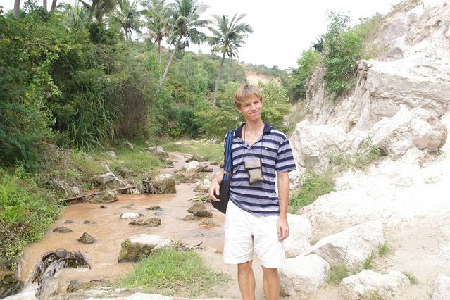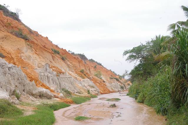 小溪的两岸一边是清翠的热带植物,茂密的鲜花伴着蝴蝶,一边是沙子堆积的山,看似一触即溃的巍峨。