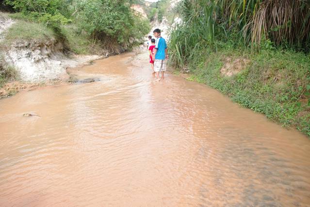 到沙丘去的路倒是不那么好找,随便找个小巷一直往里走应该都能走到的吧,磕磕碰碰地一路打听过去,找到了一条浅浅的小溪,还有三两个小孩子守在那儿当导游
