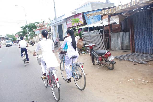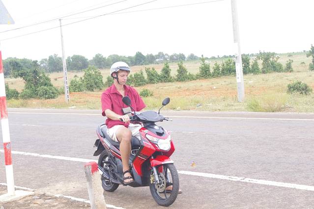 非常积极的老板娘开始跟我们推销附加产品了,自行车,摩托车两种,具体忘记了,反正我们选择了最傻瓜的一种摩托车,18万一天自己开的,带驾驶员就要将近30了,这个价格对我而言比较疯狂。租摩托车的时候车主会教的,所以不用担心,还是比较安全的。另外要注意的一点是排气管很危险,特别是那儿一般穿短裤,所以比较容易烫到,这样的烫伤有个很浪漫的名字——saigon kiss,百威同学烫了一个,还好他皮厚,过两星期就好了。我记得自己小时候也烫过,恢复期相当长,不建议尝试,大家一定要注意自己的小腿。