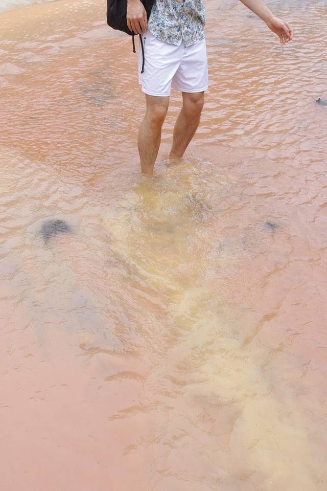 地下是细幼绵软的沙子,有点红,隐隐透出的丝丝黑色挖下去看看,居然也是沙子,一样的触感,想来想去,觉得最适合的应该是矿物面膜,奇怪的色泽但是无比光滑柔顺。