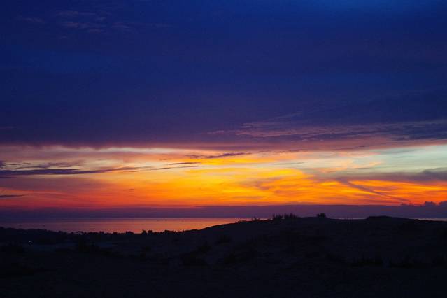 勉强结束白沙丘的时候已经是将近5点钟了,这时游人反而多起来了。在嬉笑打闹的人群边上,刚刚盯着我的大鸟和飞虫也无声无息地消失了(我在背阴处挡着塑料皮午睡,它们以为我要挂了,等着开饭,这个午睡很纠结……)