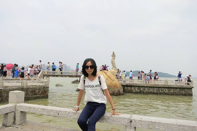 照例还是先来到了情侣路看渔女。走在情侣路上,风带来海洋的味道,蓝天白云,大石沙滩,海浪拍打在石头上,真的非常惬意。还可在此瞭望澳门。珠海是广东沿海为数不多的节奏比较慢的城市,人们悠哉地漫步在此,享受着这份轻松和悠闲。