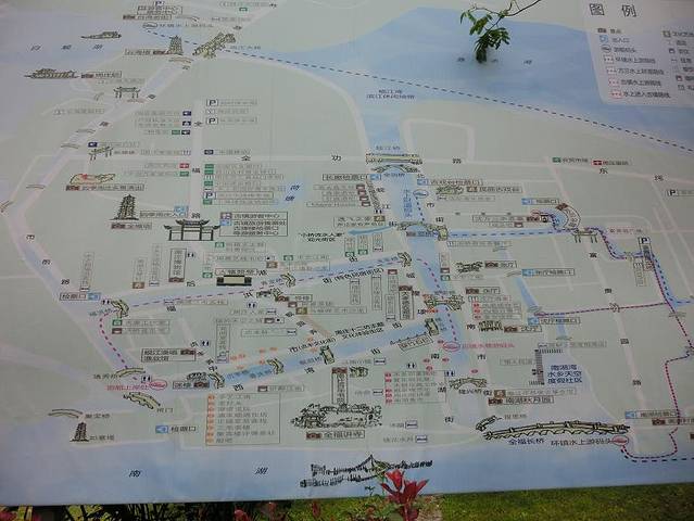 1、 周庄图解与水上看周庄:游客们在码头乘坐游船,穿过周庄大桥,在湖中围绕周庄游览半周,在南湖码头上岸,从南湖秋月圆起,开始整体游览周庄。