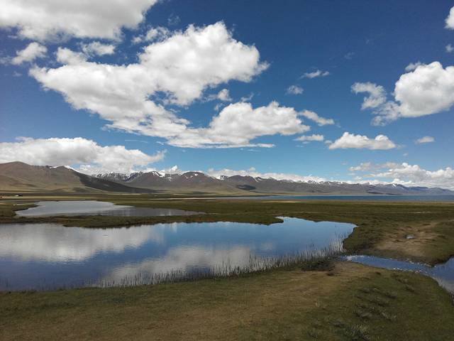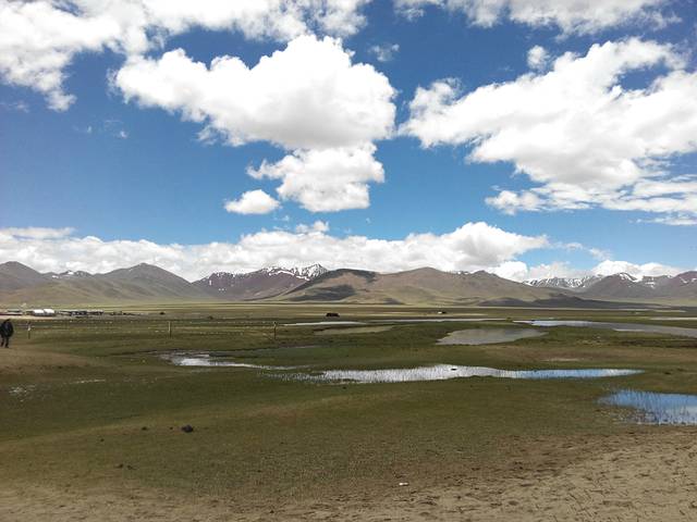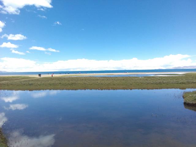 导游说,西藏的山,都有“拉”字,因为拉就是山的意思,唐古拉山,那根拉山,喜马拉雅山,西藏的湖都有“错”字,错就是湖的意思,纳木错,巴松错,错纳湖。纳木错,海拔最高的湖,这里天蓝草绿自是不用说了,但我们从这边有草的角度望过去仅是这个湖的一角,我还看过其他的照片角度是沙漠边上的明珠,我觉得纳木错比青海湖美,因为这里高,人不多,只有自然的风景,仿佛是一处未开发的景色,等着我们来发现,留下我们的足迹。这里天空云朵仿佛触手可及,忘却尘世,只有在无人区才能有的景观,仓央嘉措的诗也只有在这样宁静圣洁的地方才能创造。我们只捡了一块纳木错的石头便离开,不玷污任何圣洁,也带不走它的光彩。