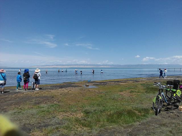 中午就到青海湖这边吃,青海湖园区很大,目的地只有一个就是青海湖,直奔过去,虽然这边海拔已过三千,但稍微气喘没什么症状,现在起每到一个景点就要注意海拔了。您见过一个没有看到岸边的湖,湖还能打起浪花,有海鸥类的鸟徘徊的吗,还有沙滩,这还能叫湖么,湖水很蓝清澈见底,还生长的一种类似鲑鱼的鱼,生长得很慢,肉听说很鲜美当然也很贵,叫湟鱼,请百度吧不多写了。在青海湖捡了石头比较小,沙丘上的沙子纪念。
