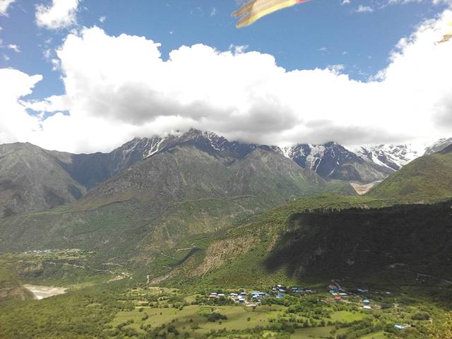 远处的南迦巴瓦峰与山脚下的村落,彷如阿尔卑斯山