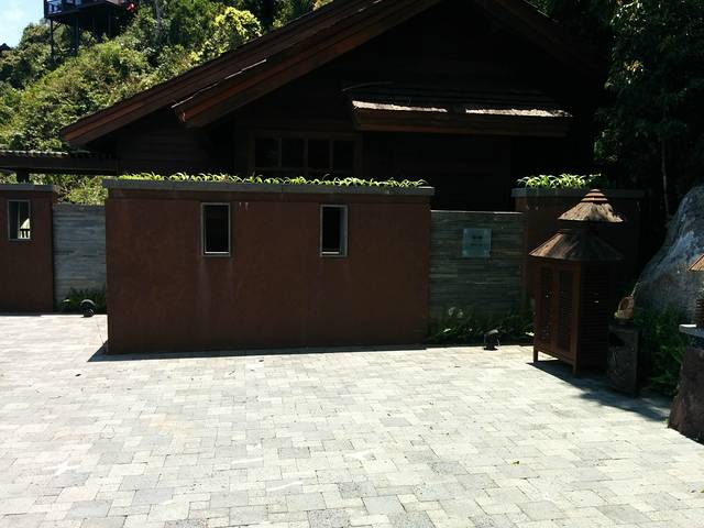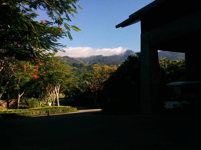 我们住在云顶区,这里有一个中餐厅和一个餐吧。酒店也送了下午茶,但品质比铂尔曼的差了许多。不过考虑到是在山上,也可以理解。餐吧有一个大露台,面朝亚龙湾,景色非常好。露台上风很大,但已分不清是山风还是海风了。中餐厅没什么客人,看了一下菜单,也没有吸引人的菜品。于是我们决定去酒店的泰餐厅去吃。从云顶区到泰餐厅和西餐厅的位置,也需要做摆渡车,餐吧的服务员帮我们叫了车。车很快就来了,很方便。从这里到泰餐厅大约需要10分钟。司机依然很热情,到餐厅时还没到开餐时间,司机提醒我们先进去定个位置,因为这个餐厅客人不少好位置不预定就没有了。