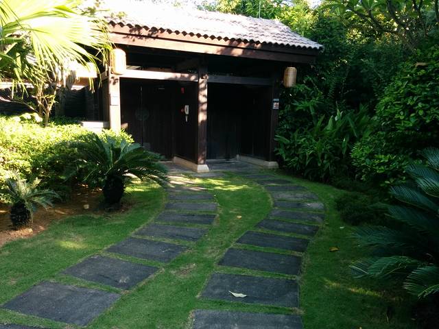 饭后,我们在别墅周围散步。整个山顶区,除了我们,只有另外一对情侣入住,日落之后,完全沉寂于一片静谧之中。远处中餐厅小楼的灯光蔼蔼亮起,恍惚中似乎走进了千与千寻的世界。