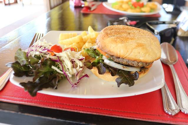 去附近餐厅吃了点消费还可以跟国内商城里差不多 菠萝饭 汉堡 样子不错吃起来也可以!这是吃的最饱的一顿了,人均消费50