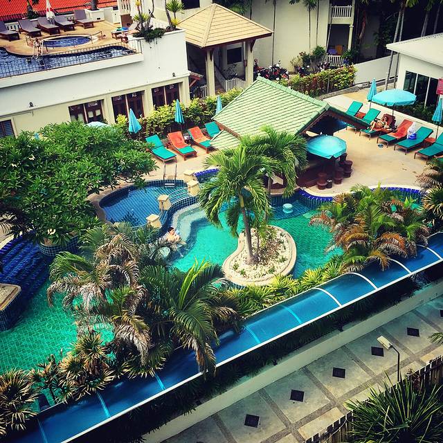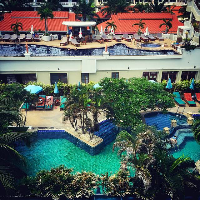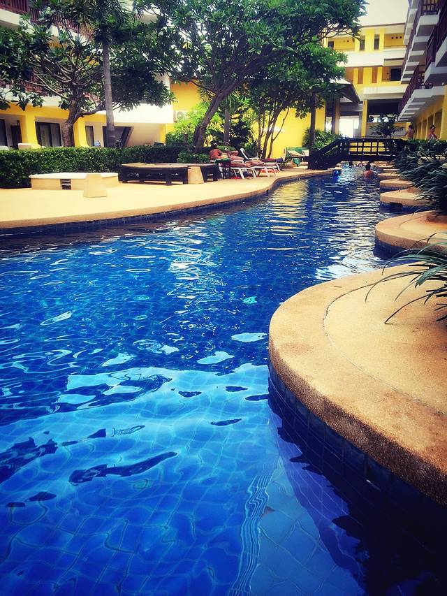我们住的是一个度假村酒店 叫什么我也不记得了 英文盲别怪我哈哈!吃完饭换上游泳装备准备去下面玩耍玩耍! 酒店内的游泳池 比较干净的 老外们都在悠闲的晒这太阳!