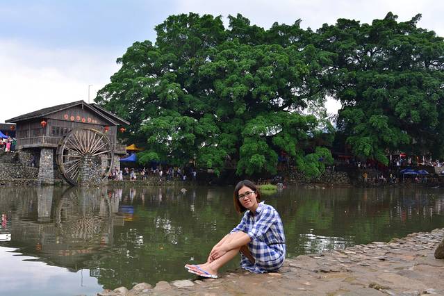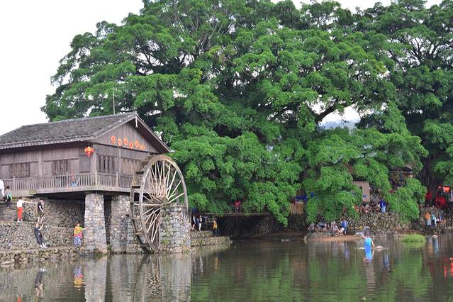 榕树包围下的水车,似乎还在惜疼着那份爱情。禁不住想坐下来,感受着这坚持的力量。