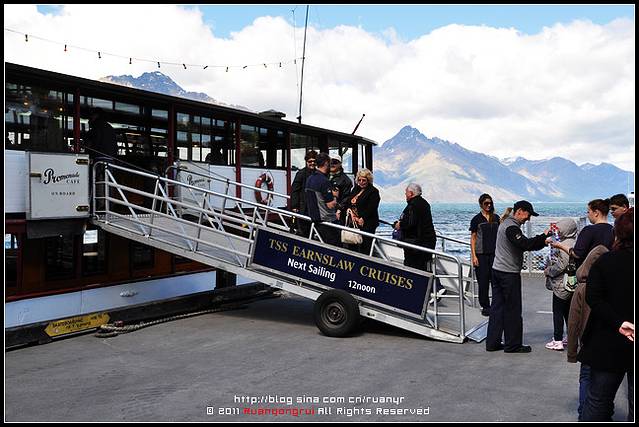瓦卡提普湖(Lake Wakatipu)上的古董蒸汽船“TSS Earnslaw”号已经有了100多年的历史,这艘漂亮的老船当年就是瓦卡提普湖上的主要交通工具。时过境迁,各种快艇、直升飞机、现代的公路已经让老船卸下了昔日的重负,随着皇后镇旅游业的兴旺,老船再次重装,焕然一新的担起了新的使命,用它13节的航速,带着来自世界各地的朋友巡游于美丽的瓦卡提普湖上。