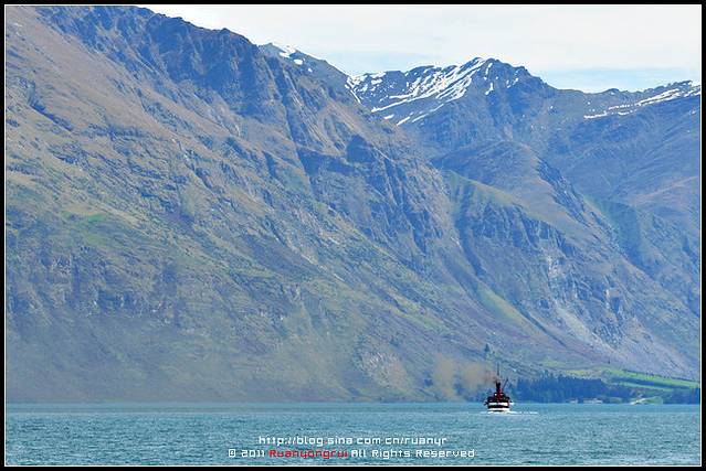 远处驶来的古老的蒸汽船是瓦卡提普湖上唯一合理合法冒着黑烟的家伙,它缓慢的身躯载着世界各地的朋友巡游在俊美的湖光山色之间