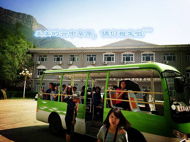 好期待今天的云中草原果然没让偶失望,8点半吃过早点后我们就被送到山底下,我们可以选择索道几分钟送上去,也可以选择爬山上去。大部门同伴们都选择了索道,一直不走寻常路的我毅然选择爬山,赏景、锻炼两不误!其实山一点不高,石头台阶很好走,爬上去也就四十分钟,我几乎连汗都没出,但跟我同行的汉纸貌似出了很多汗,看来偶平时的跑步锻炼还是很有效果的,嘻嘻~