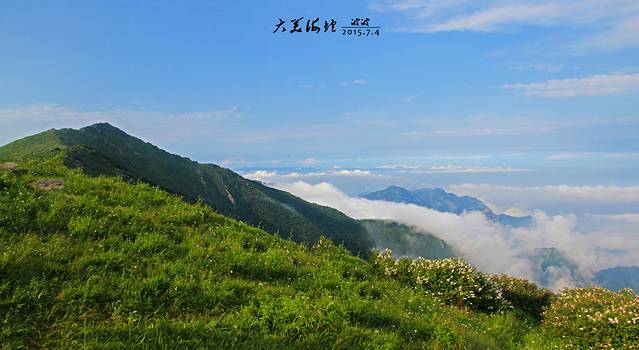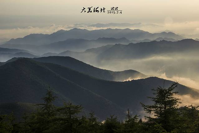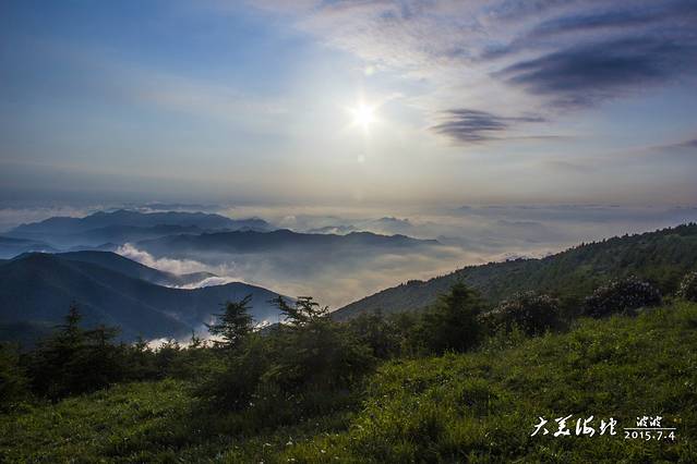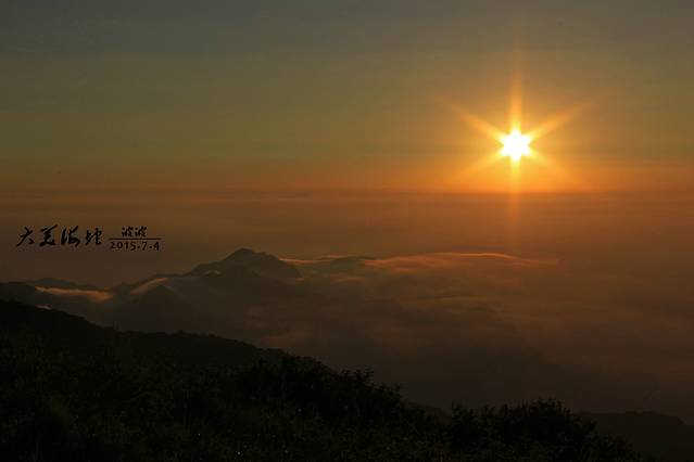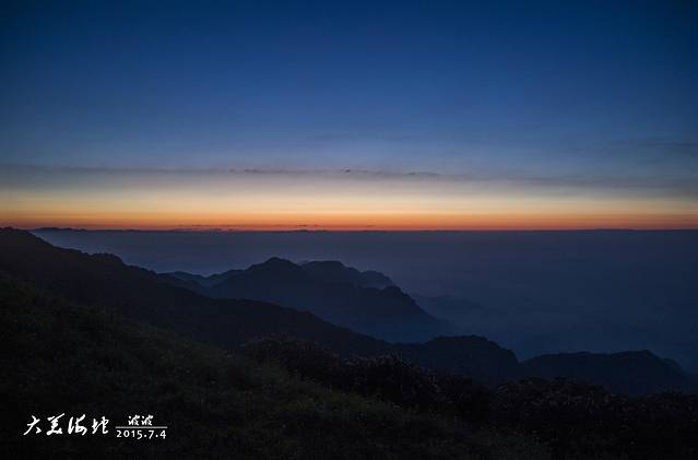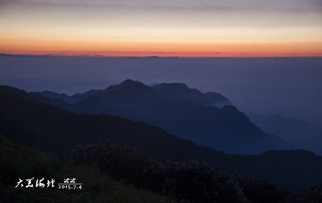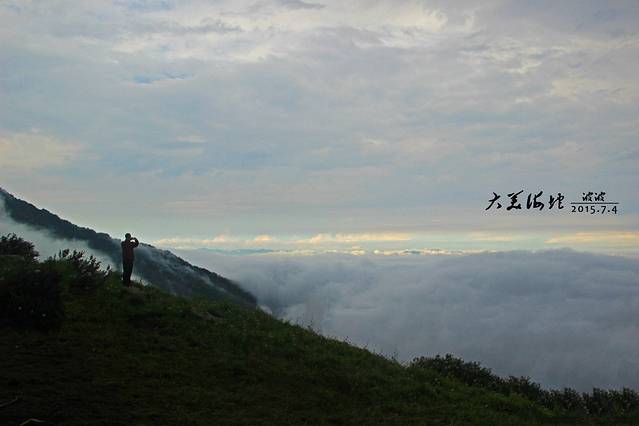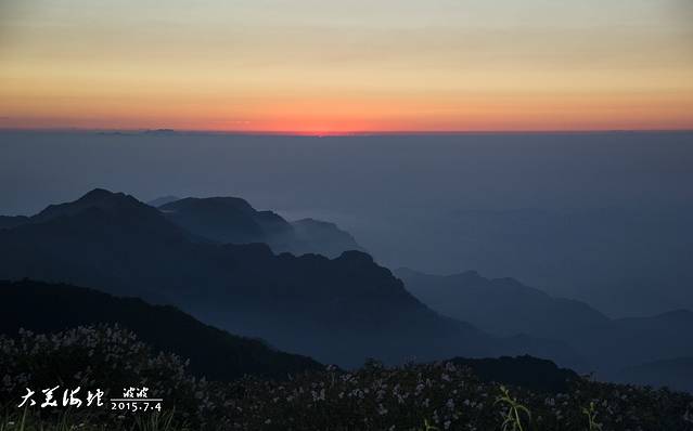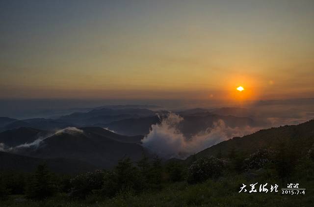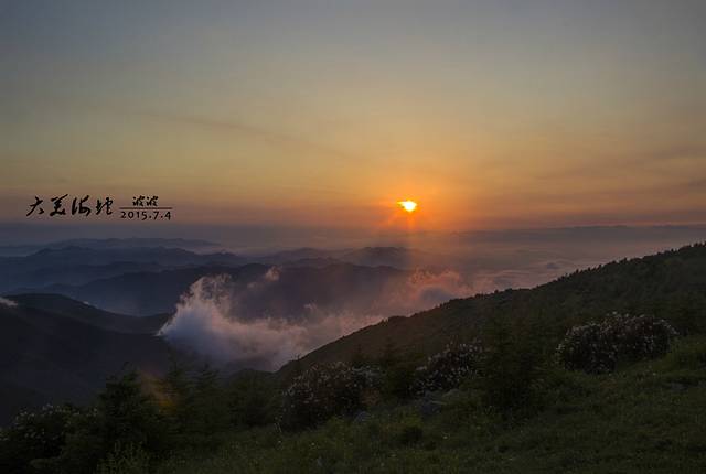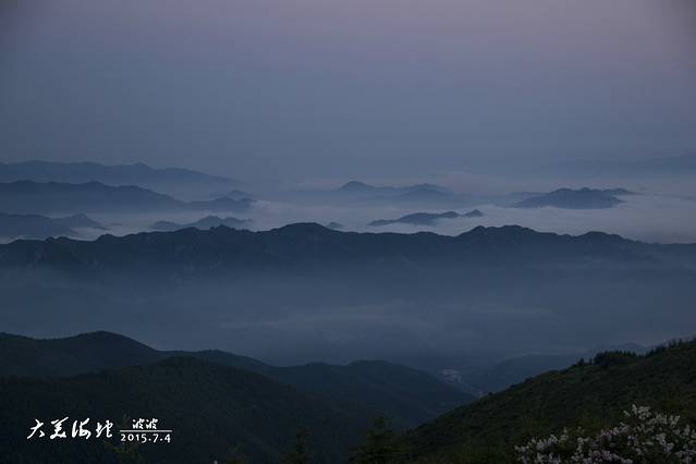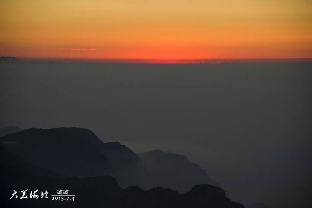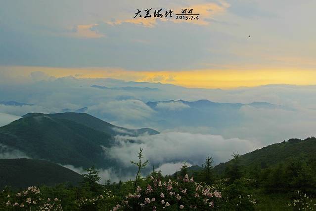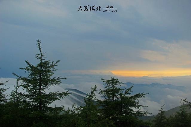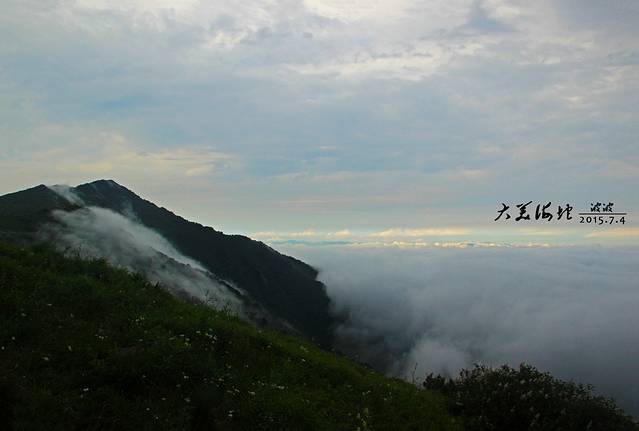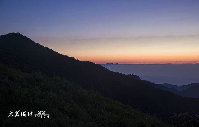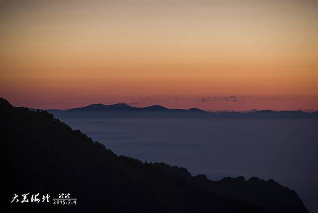 刚爬到鞍部,回头向西望去,云海滚滚,依着山脊,就那么顺山而行,天边透出一抹霞光。