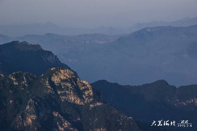 海坨向西是连绵的太行山脉,层峦叠嶂,配上落日的余晖,相得益彰,国画般的呈现在眼前。