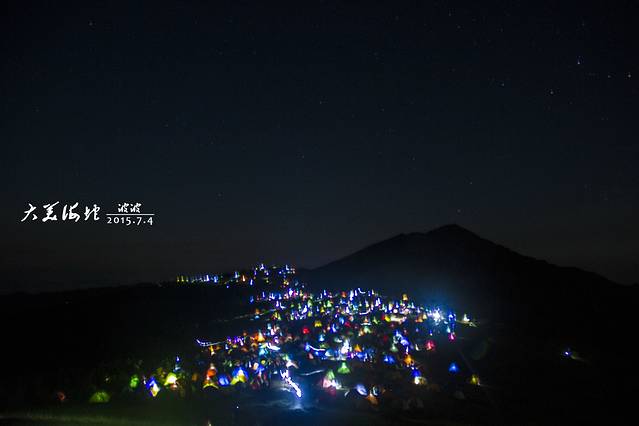 鞍部一个挨一个的扎满了帐篷,露营灯点起了花花绿绿,映衬在星空之下。