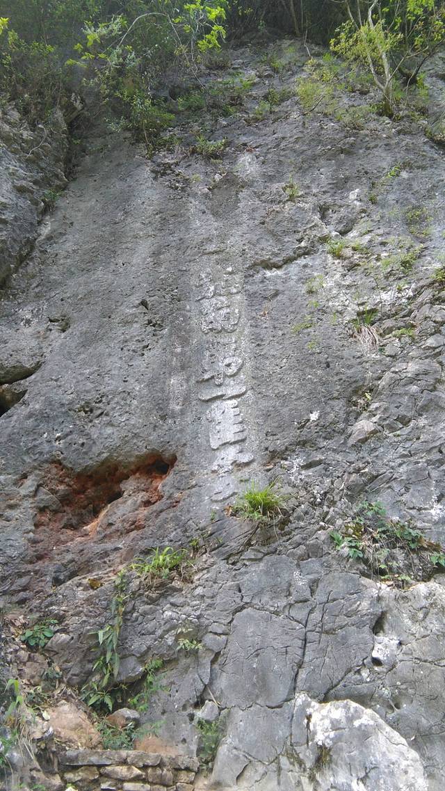 该字刻于石门,因半山腰峭壁中有一洞厅,洞厅到峡谷处通道狭窄,其状如门,往来者必出入此门,故名石门,石门外右为悬崖,左为深渊,一夫当关,万夫莫开,地势极为险要。出石门外二十步,右边绝壁上有一摩崖石刻,行体竖书阳刻6个大字:“施南第一佳要”,每字60厘米大小。清乾隆四十年(1775年),四川铜梁举人贾思谟赴宣恩知事时所题。