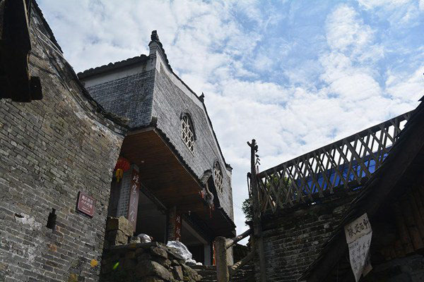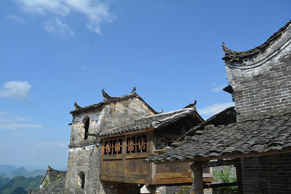 进了寨门,仿佛时光的隧道带着我们回到过去古老的时光。古寨的层层房屋依山傍坡,一排排整齐划一的古典建筑,石板道纵横交错。房屋多数建于明清时期,沙砌青砖,屋顶盖瓦,四檐翘角,整齐规范,古色古香。屋内以粗木为主,木板为墙,真的好有历史感。