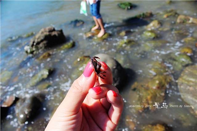 坐了那么久的车,应该下来活动活动个,抓到一只小螃蟹。嘿嘿~