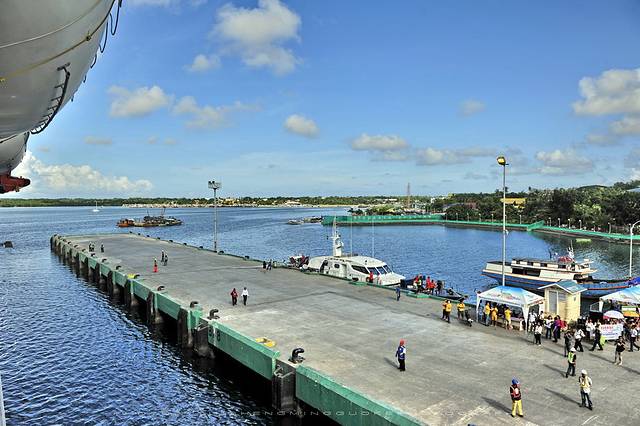 我们乘坐的丽星邮轮宝瓶星号停靠在巴拉望普林赛萨港(公主港),简直就是一座庞然大物,把小港口占的严严实实的。