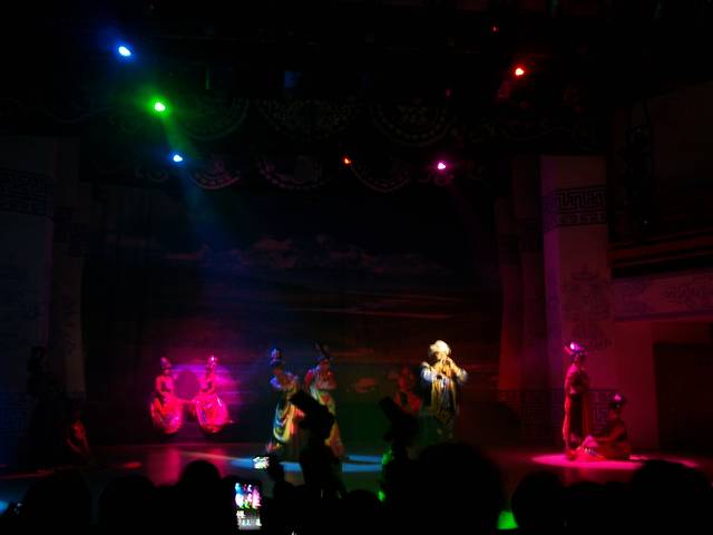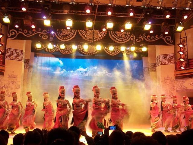 回去休息了一会,自己解决了晚餐。晚上参加了藏羌晚会,开始并不抱什么兴趣,可是节目却很精彩,看得我们津津有味。最让我感觉到的是,藏族都是俊男美女。