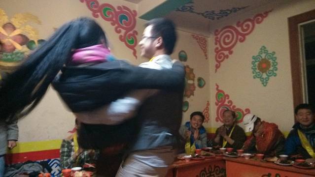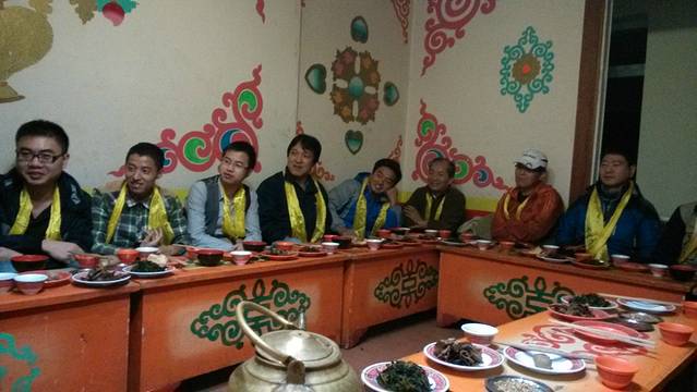 游玩黄龙下来四点多了,我们没有停留太长时间,五点上车集合继续出发后,七点多导游带我到了一家藏族餐厅,很有藏族的特色,进门之前还要跟着他们的传统,洗手、跳火盆、转转经筒、摸牛头。我们一个团坐一个房间,吃的菜都很合我的胃口,主人也和我们互动做游戏,很好玩。这就是跟团的好处,自驾游是很难找到这些特色的活动的。晚饭过后,我们便立即启程,抵达了九寨沟山下的酒店,因为明天行程比较多,大家回到酒店早早的就睡了。