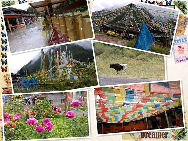 快十二点,我们到达了九寨沟的美食购物广场,这里边什么都有,当然什么都贵。简单的吃了一些午饭之后,便继续出去去往了九寨沟最高的一个海子,也是最漂亮最大的一个海子,很多的宣传照都是在这里拍的。在这里品味呆了一个小时之后便往回走了。因为上午怕时间不够赶得及,结果早早的看完了,下午便走得很悠闲了。路过了一些寺庙和农家,藏式风格浓厚,很喜欢这样的地方! 大约三点多,我们便回到了九寨小边的小镇上。
