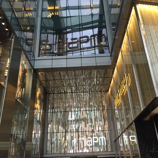 对这里早就种了草!为的就是楼下的艺术展览中心!结果过去告诉我们还没开始……现在在装修!简直万念俱灰!那只好去吃饭咯!这座购物中心吃饭的地方还真的是蛮多的,价格也都不便宜,人均都在200左右!所有的奢侈品这边也都有!我们中饭吃的是一间意大利餐厅。点了鸡丝沙拉,披萨,还有甜品组合。餐前点的是番茄什么什么的!味道还是很赞的!推荐!