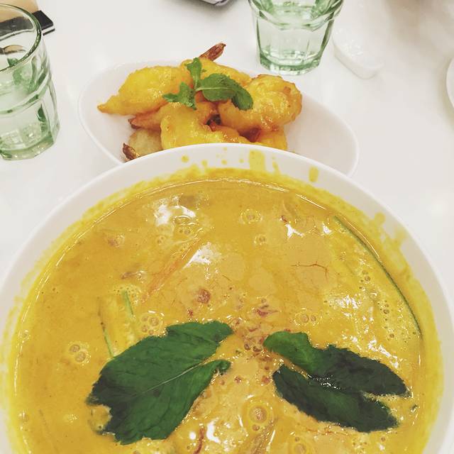 去完夏日祭,就在大众点评上找了附近的一家泰国餐厅,评价四星半那!冲着这个四星半去的!店面不大!餐前有龙虾片送,我们两个人,点了羊排,柚子大虾沙拉,咖喱鸡,还有一个芥兰。羊排不是很好吃,烤的有点老了,然后柚子大虾沙拉还可以,咖喱也还好,只是那天我们早饭吃的晚,所以中午就有点吃不下。中午一顿吃了💰200