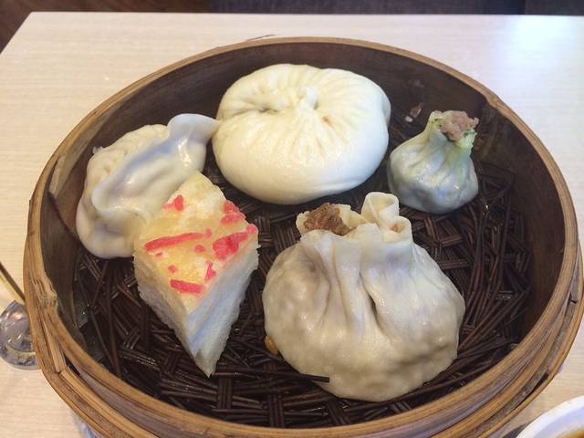 我点的包点全家福:五丁包、蒸饺、千层油糕、翡翠烧卖、松子烧卖。