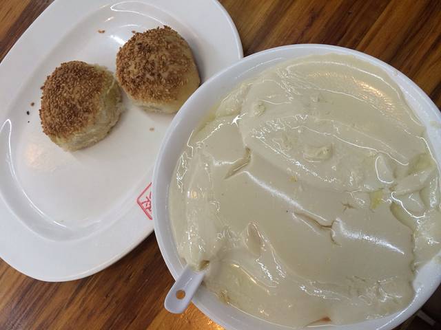 点的豆腐脑和一甜(椰茸)一咸(肉松)烧饼