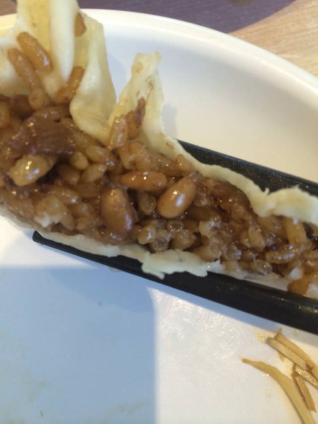 松子烧卖,以糯米拌入松子为馅心,松子与糯米形似,不经意间咬入松子,满口盈香。略感油腻,啜一口茶🍵,惊讶地发现松子与绿茶居然如此合拍。