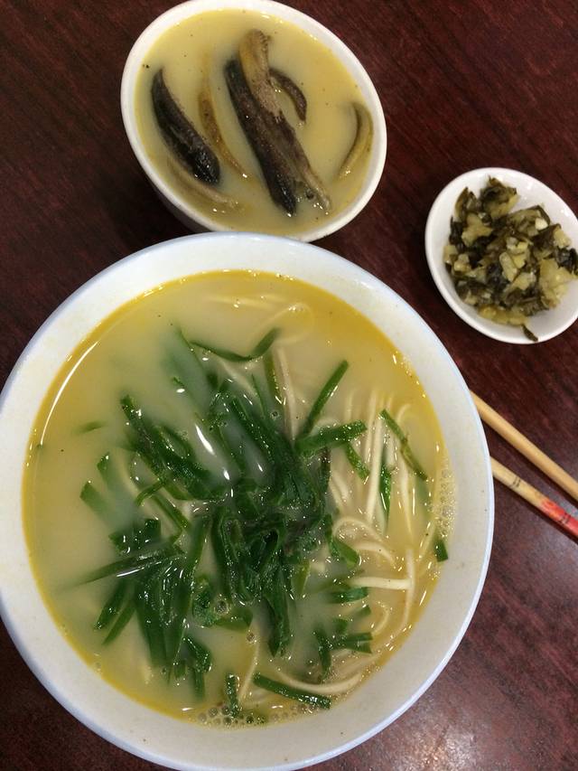 嗦一口面,咬一口长鱼,喝一口汤,还是辣么好吃,满满的感动😹。小长鱼鲜嫩,有弹性的肉感,一点也不腥。浓白的汤里有浓郁的胡椒味儿,但又不是简单粗暴的胡椒面,汤味感有层次,不知道是怎么做到的。