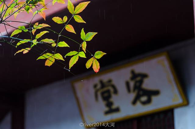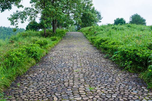 下着毛毛细雨,石头上非常湿润,路边的草木被清洗一新。