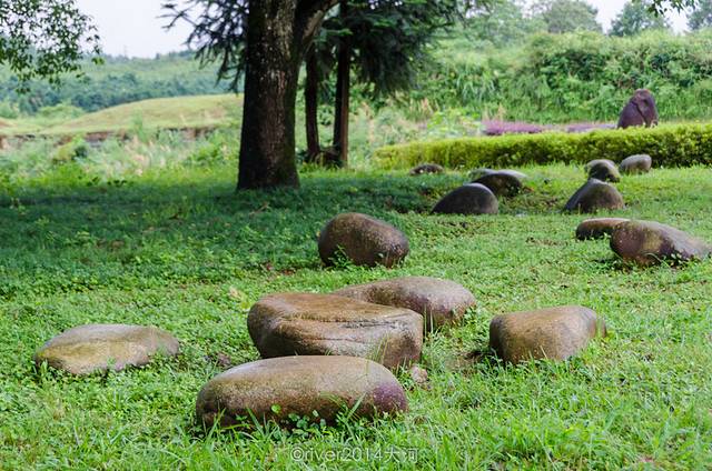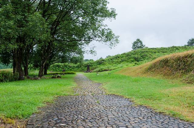遗址占地48万平方米,游客并不多,走进去是一条鹅卵石铺设的道路,环境幽静。