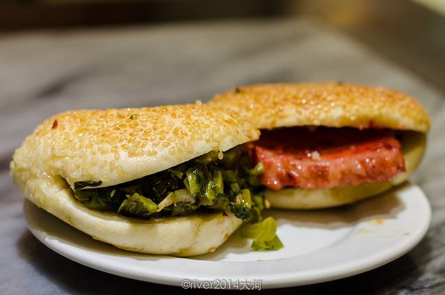 光饼做成了肉夹馍,可以夹菜,也可以夹肉。