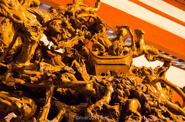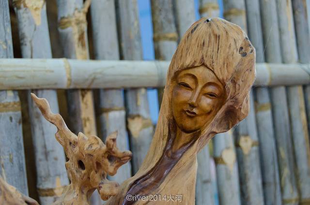 雕刻主要以美女和佛像为主,依照树根的形状雕刻成不同的造型。