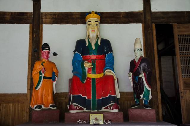 关帝殿内供奉的关羽像,身材高大魁梧。
