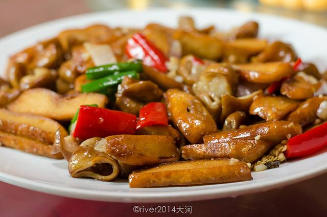 建阳的光饼炒大肠,是当地特色菜,光饼酥脆,口感独特。